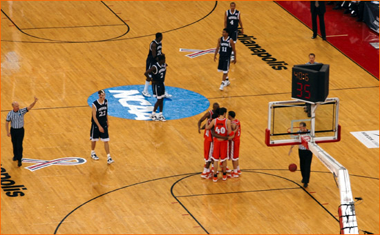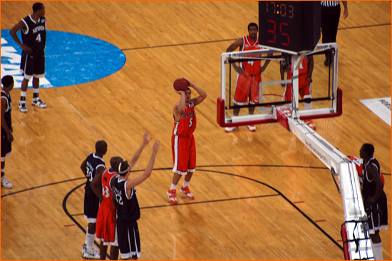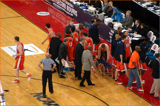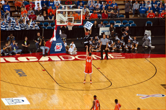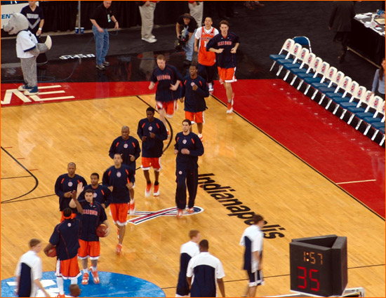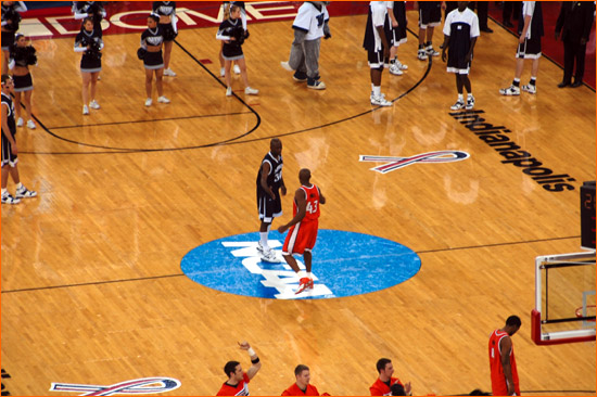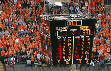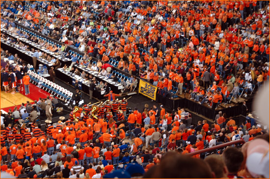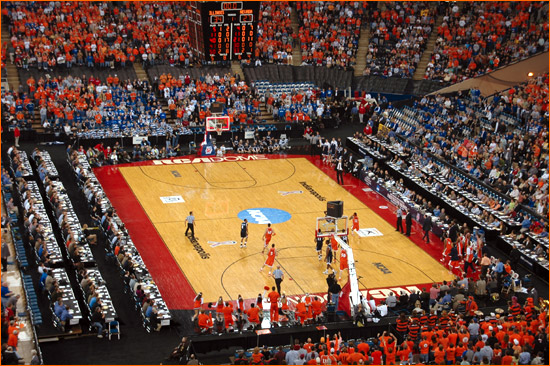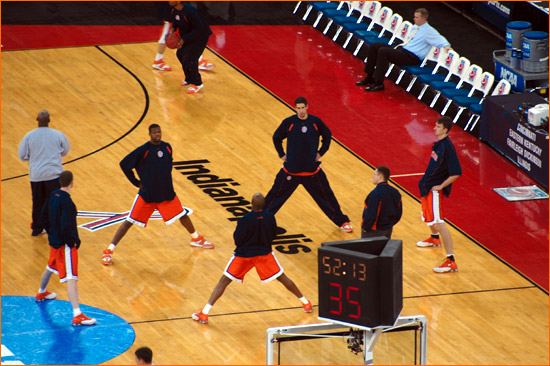 Jared sent in more picts from the scene at Indy for Illinois' 2nd Round 71-59 victory over Nevada. James Augustine went crazy for 23 points on 9-11 shooting. The contest was played before 40,331 at the RCA Dome, a record for a 2nd Round NCAA tourney game (the gate was also helped by fans for the Kentucky-Cincinnati game, however the majority of the fans were with the orange).