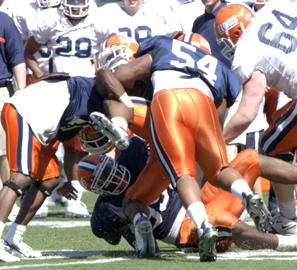 10,000 fans enjoyed their first glimpse of freshman receiver Arrelious Benn Saturday at the football Spring Game in Memorial Stadium. Juice Williams found Benn fives times for 145 yards and a TD. Recap. Article. Article. Thread. Pictures of the Memorial Stadium construction.