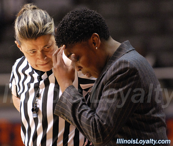 Illinois head coach Jolette Law and official June Courteau.