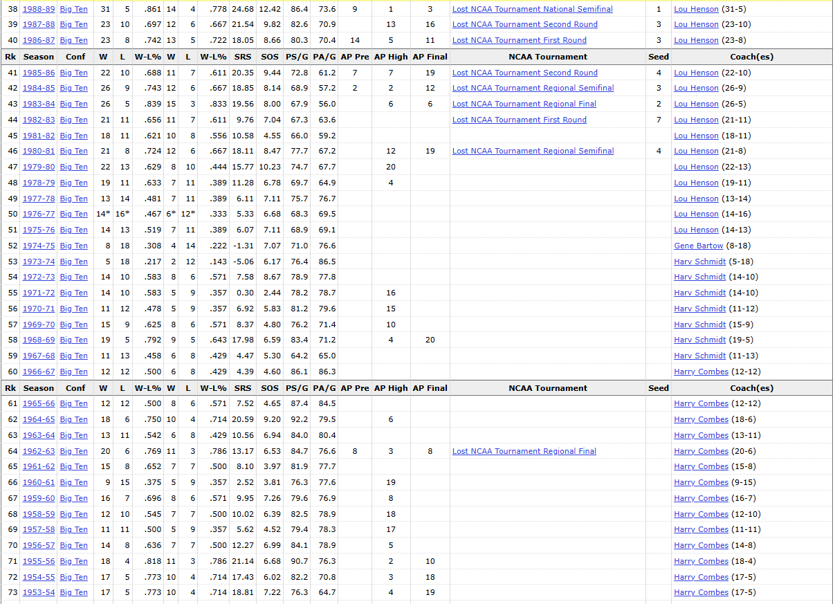 And this is not me saying I think we're beneath those type of results year in and year out. I want to achieve that level of success as well, and I think in this NIL era we certainly can. I'm by no means tied to Brad as far as my fandom is concerned. Heck, there is a universe where Josh is gone before Brad. My hope is that we sustain the success we've had during the regular season while adding more deep tournament runs (which I believe will come). That's the thing I think we all agree on that gets lost in these discussions about expectations vs results: that we all want the same thing, pretty much.