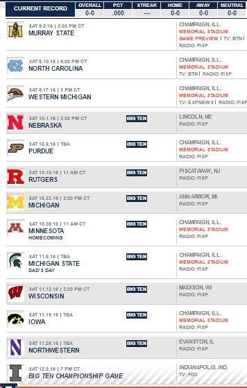 5 BIG road games. Home games v. Michigan St and Iowa.