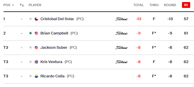 Course is 6,254 yds at 8600 ft above sea level. Many drivable holes.Cristobal Del Solar shot a 57 in the opening round in Colombia (Korn Ferry Tour). This is the lowest score on any second-tier tour in history. And what's crazy is he could've done better - he shot a par on each of his last three holes!