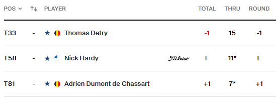 He's now -7 on the back with the 18th still to play. A tale of two nines, for sure!Detry fell to +4 with a 39 on the front nine. Then he birdied 5 of 6 on the back nine to get to -1 after 15!