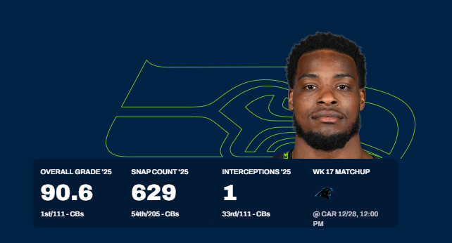 Highest graded CB in the league, per PFF:![]()