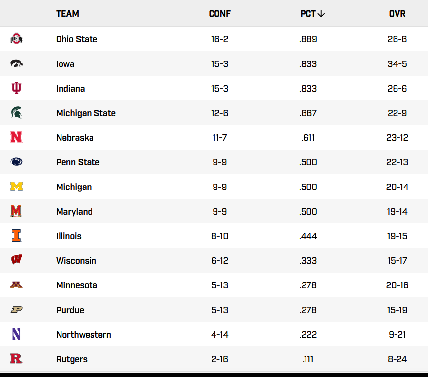 Problem caused by USC and UCLA joining the other 8 teams that finished ahead of usIf the reload has 4 of those 6 then it's an upgraded reset.. and competing for B1G titles.. Some publication picked us 8th this year...They don't understand the experience factor ,let alone a serious lengthy rotation...My mind says we could be third to sixth..