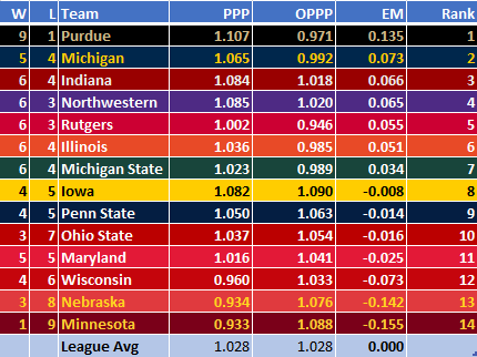 - Still Purdue with a significant edge over the rest of the conference, with the gap between them and Michigan larger than the gap between Michigan and Iowa.