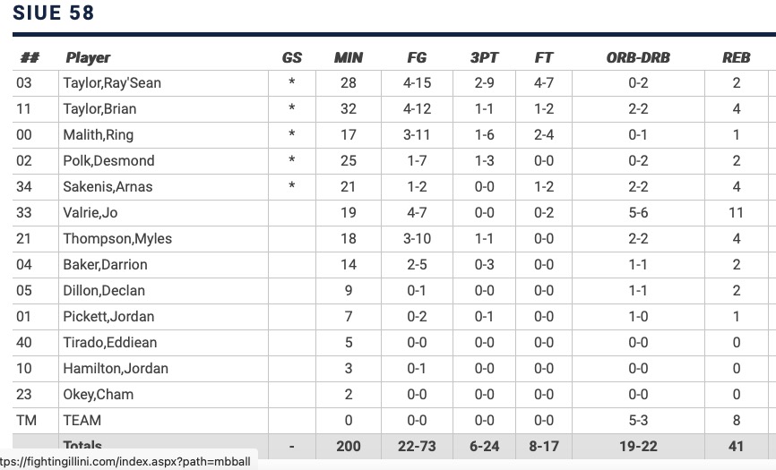Yeah, it’s strange narrative. Of the 50 rebounds that were available when SUIE shot the ball, SIUE got 19 or 38%. Of the 38 rebounds available when Illinois shot the ball, Illinois got 16 or 42%. There is room for improvement, sure, but...