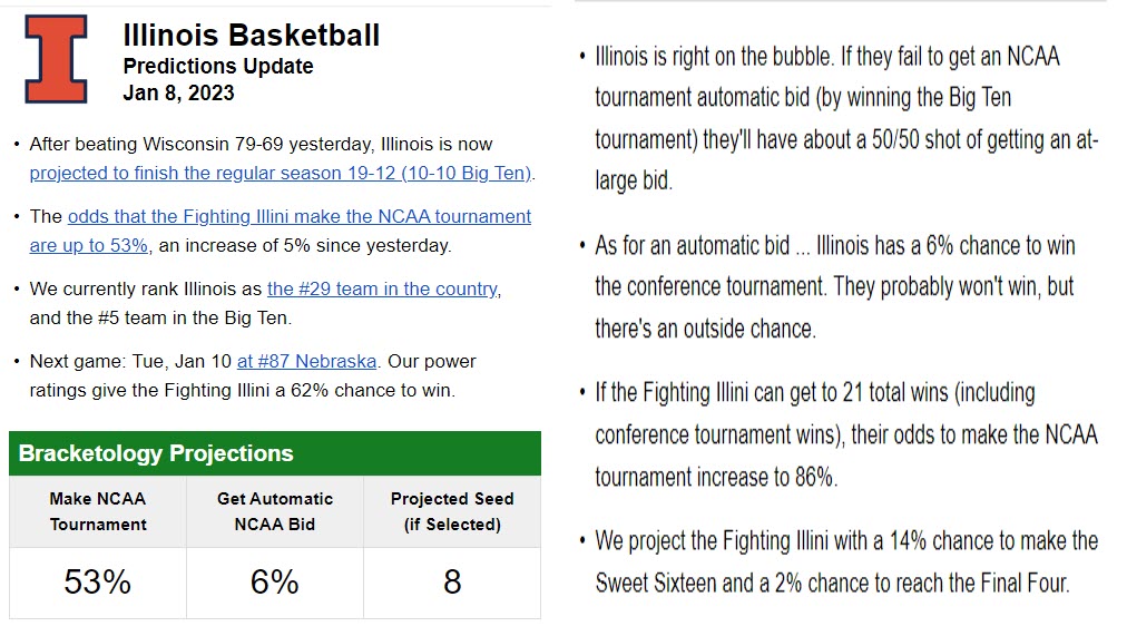 Some of those Good VIbrations might rub off on their roundballers. So the Illini have to be their Top 20 version and not the Penn State-Missouri-Northwestern version.
