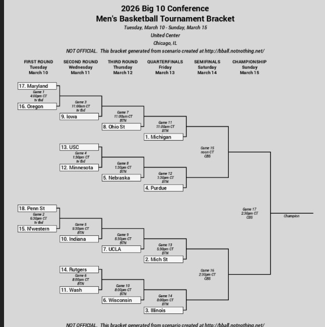 (2) If we are the #4 seed, we have also locked ourselves into the morning session with Michigan for both Friday and Saturday if we make it. That doesn't just suck because Michigan will certainly probably have a good showing themselves, as I am sure MSU would also bring a lot of fans if we were in the evening session with them. What sucks the most about this is Michigan fans have known they'd be the morning session for Friday and Saturday for well over a week now, giving them an edge on scooping up tickets. By contrast, assuming Illinois beats Maryland, we wouldn't know for sure if we were the #4 seed (morning session) or #3 seed (evening session) until like 6:00 pm on Sunday night. The odds are pretty heavy that we are the #4 seed, but that is only because people are assuming Nebraska will beat Iowa at home.